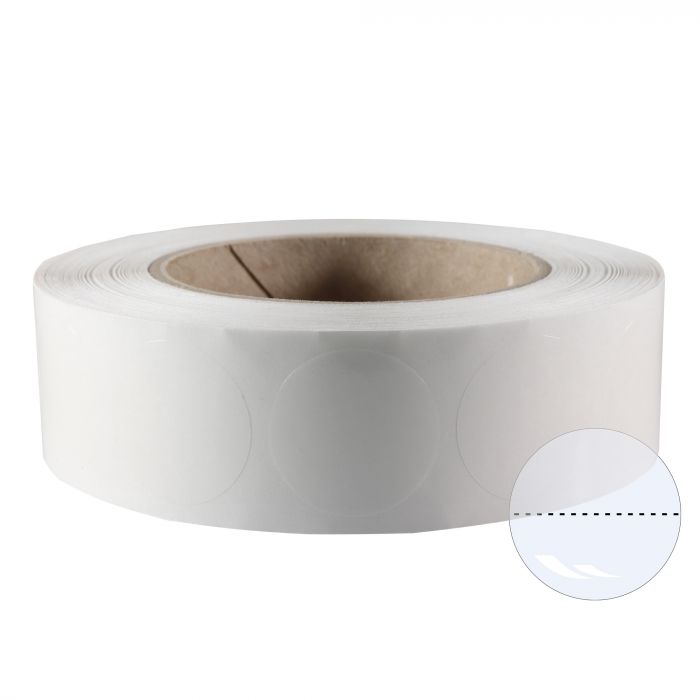 Runde, 2-seitige Klebepunkte (20mm Durchmesser) mit Deckblatt + Anfasslasche finden Sie ebenfalls in unserer Preisliste.